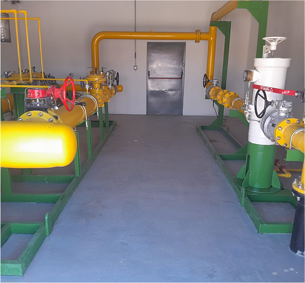 Adicionalmente, se construyó un ramal de acero de 6” a lo largo de 2.000 metros sobre la avenida Eguinoa, el cual alimenta a una nueva Planta Reguladora y de Medición (PRM), diseñada para abastecer a unos 6.000 nuevos usuarios residenciales e industriales. Esta PRM cuenta con una capacidad de regulación de 6.500 m³/h, adecuada para cubrir la demanda proyectada a 10 años, considerando el crecimiento poblacional y la expansión de loteos urbanos en la región.